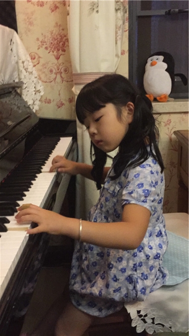 薛楚君今年刚满十岁,是云南昆明一名四年级的小学生,她学琴已有5年,每当她练琴疲惫的时候,就即兴弹起自己创作的曲子,那时她就感到很快乐。在金钥匙比赛之前,她的作曲作品《Church in snow》(雪中教堂)还获得了常青藤国际作曲大赛的二等奖。