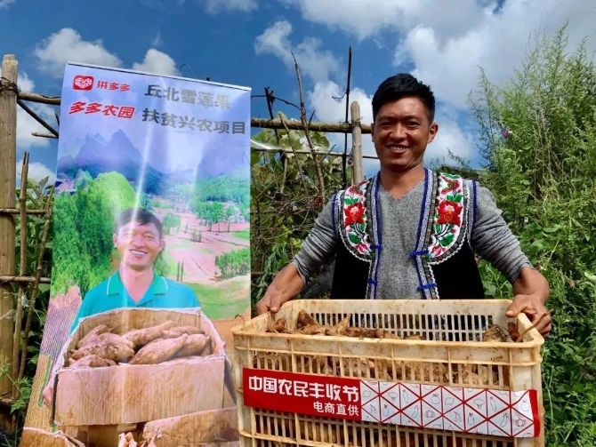 今年4月26日,上海市最大的互联网企业拼多多与云南省政府正式签署《战略合作框架协议》,投入1个亿,大力推进云南特色农产品上行工作,构建种植、加工、营销一体化扶贫兴农产业链条。拼多多在丘北腻脚乡3个贫困村推动 "多多农园"雪莲果项目落地,动员141户建档立卡贫困户作为社员,并安排注册资金49.35万元,成立了丘北县阿大鲁雪莲果种植专业合作社,助力贫困地区培育发展优势农产品并形成产业优势,打造让贫困户增收脱贫的可持续发展机制。目前,全县雪莲果进入丰收采收季节,已上架拼多多农产品平台,销售情况稳中见好,将有力助推丘北脱贫攻坚工作。