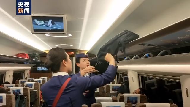 接到通知后,列车长第一时间赶到旅客的座位,将行李架上的背包取下,带到餐车和乘警将包内的物品逐一清点。