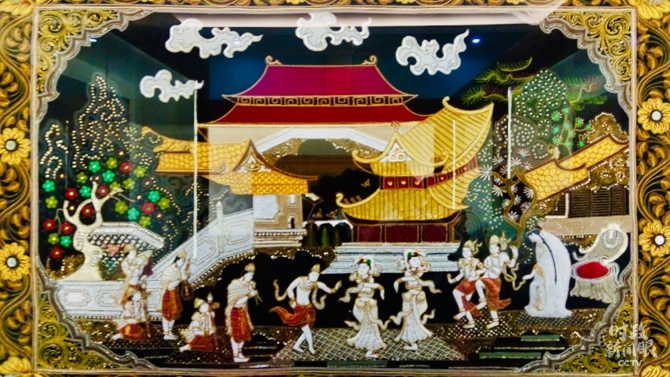 △这是缅甸曼德勒市“胞波博物馆”里的一幅展品,用缅甸刺绣再现缅甸骠国乐舞的华丽场景。