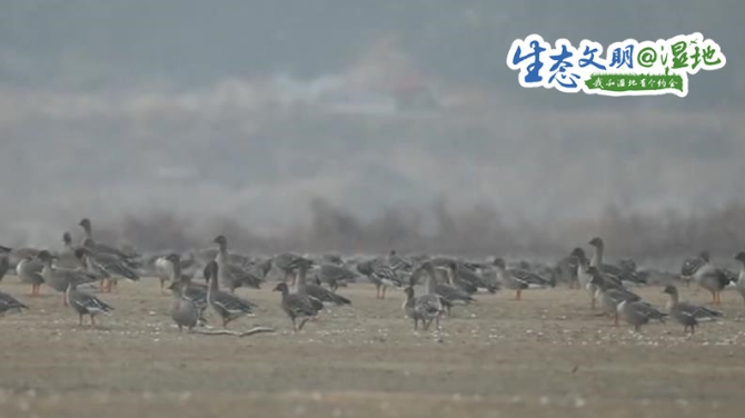 安徽霍山县的东淠河湿地公园,近期这里已经聚集了上千只前来过冬的大雁和几百只小天鹅。