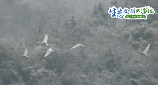 有着厚厚羽毛的鸟儿们不惧寒冷,悠然自在感受着雪花飘落,偶尔伸开翅膀抖落积雪和大家一起在漫天雪花中飞舞。在安徽庐江县白湖镇境内的黄陂湖湿地也有成群的鸟儿在尽情嬉戏。
