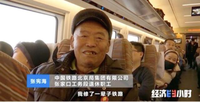 2020年1月10日,已经将近80岁的张宪海在外孙许波的陪同下,第一次来到京张高铁怀来站,体验我国最先进智能化的复兴号列车。