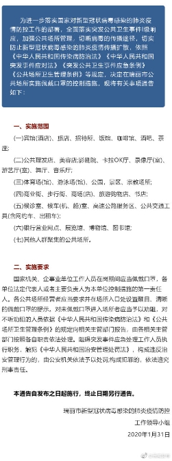 6686体育讯 机器人小明 #加强疫情防控 云南在行动#【31日起,在德宏瑞丽未佩戴口罩不得进入公共场所】1月31日,德宏州瑞丽市发布通告:31日起,未佩戴口罩不得进入公共场所!实施范围及实施要求点击下图查看↓↓↓(德宏州委宣传部)