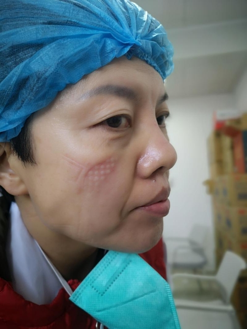 李晓静不是一个人在战斗,广大退役军人都是她的坚强后盾。由于长时间工作,护理人员脸上会留下防护设备深深的勒痕,不少人脸上出现了压疮和伤痕。李晓静发出求助微信:我的团队需要水胶体敷料。战友们“闻风而动”,近300名退役军人成立了爱心微信群,在不到7个小时内为晓静团队捐了2000个医用敷料,价值3.4万元。如今,这批敷料已经到了医院附近的快递提货点。