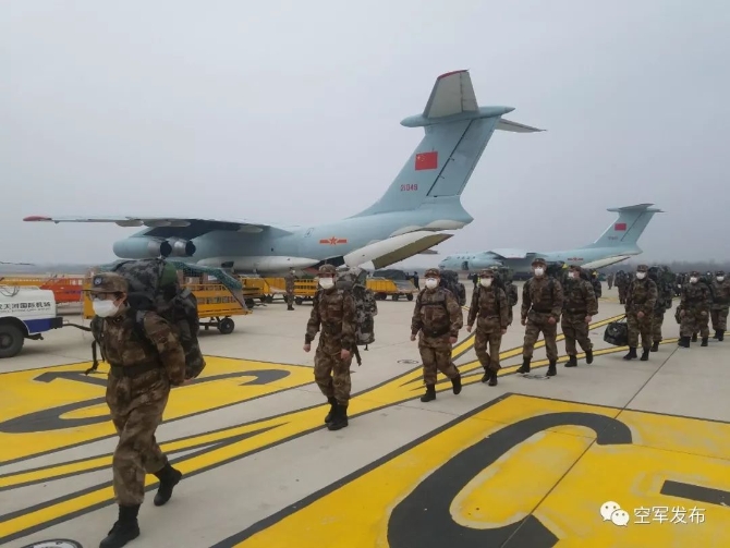 按照中央军委命令,空军2月2日凌晨出动8架大型运输机,分别从沈阳、兰州、广州、南京起飞,向武汉紧急空运795名军队支援湖北医疗队队员和58吨物资,上午9时30分全部抵达武汉天河机场。这是继汶川、玉树抗震救灾之后,空军参与非战争军事行动同时出动大型运输机数量最多的一次。