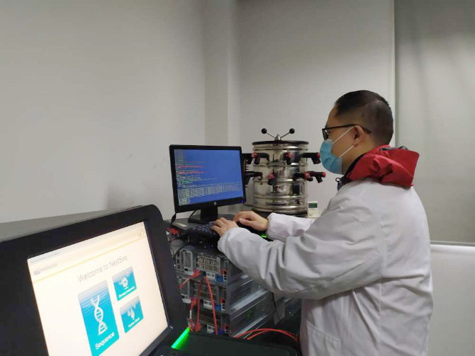 达摩院算法专家顾斐博士在疾控中心基因检测分析现场