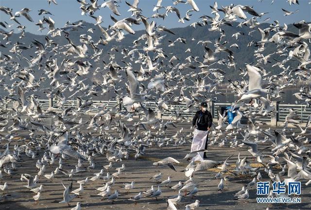 自1985年以来,红嘴鸥已连续30余年从遥远的西伯利亚等地飞往春城昆明越冬。据昆明市鸟类协会观察统计,这个冬天来昆明越冬的红嘴鸥有4万余只,数量创下历年之最。新华社记者 江文耀 摄