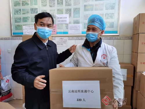 全国政协委员、原云南公安边防总队医院院长陈本善将军把预防疫情的中药配置好,交到了血液中心工作人员手中,为疫情防控期间的血液中心一线工作人员助力。