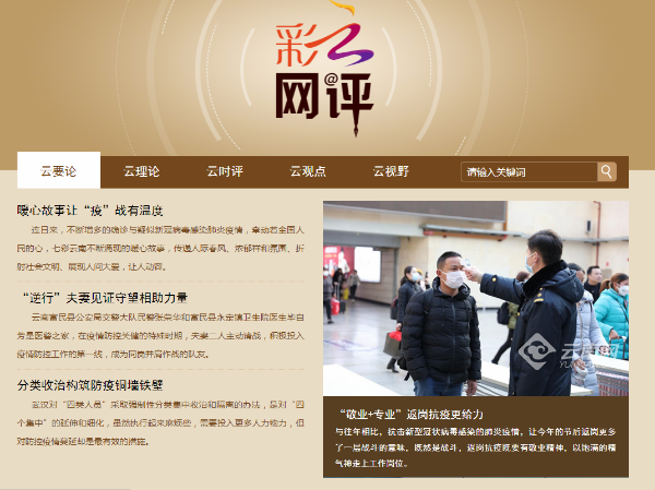 为贯彻落实党中央有关疫情防控宣传舆论工作的决策部署和习近平总书记重要指示精神,以及省委省政府的具体要求,推动网上形成众志成城、守望相助、合力抗击疫情的强劲正能量,云南主要新闻网站在高标准做好权威信息转载和防疫知识普及宣传的同时,推出了一系列具有影响力的原创报道,为打赢疫情防控阻击战营造了良好的网络舆论氛围。