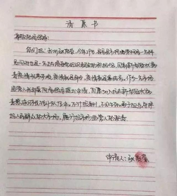 “作为一名市场监管人员,我向领导请战。在当前举国上下正在抗击冠状病毒肺炎疫情的关键时期,部分不法分子趁机囤积居奇、肆意提高价格,发国难财、赚黑心钱。面对这些扰乱市场秩序,破坏公平竞争,破坏哈尔滨发展环境的违法行为,我将注定和扰乱市场公平秩序的行为抗争到底!”