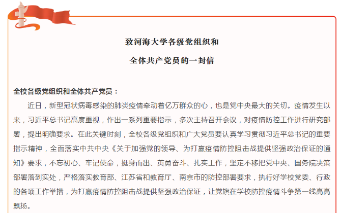 《致河海大学各级党组织和全体共产党员的一封信》(节选)