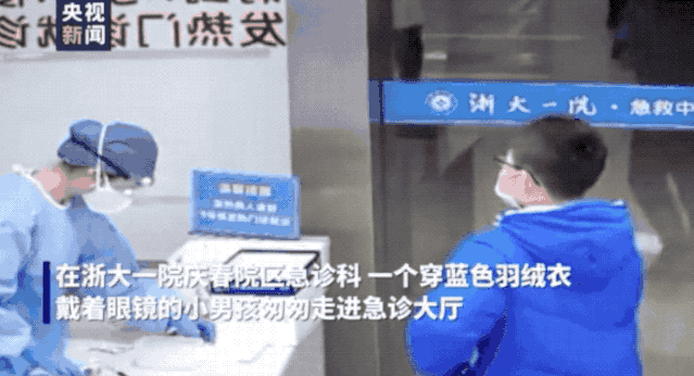 一个小男孩走进急诊大厅,