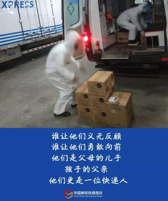 他们是会害怕的那个人,他们也会面临惊惧,待春暖花开,艳阳普照,终于可以坐在武汉街头吃上一碗热干面之时,我们不要忘记,他们在网点连续多日在啃方便面,他们在车上始终都不想多喝一口水,他们在机舱里竖立的大拇指,他们在请战书上坚定地摁下红手印,他们在转运仓里一次次地装上医疗物资,他们在电话和网络背后嘶哑的嗓子和熬红的双眼,他们在防疫指挥中心淡定又焦灼的面容。