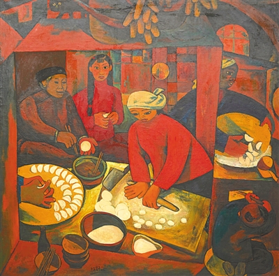 包饺子(油画·局部)费正