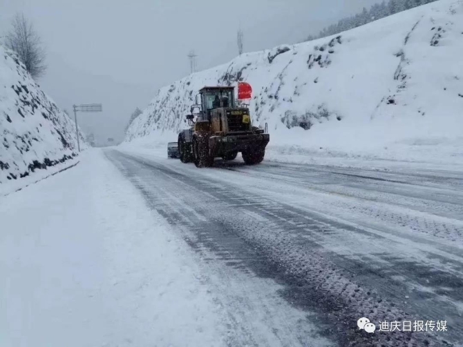 白茫雪山路段(K1990-K2019)路面积雪达30cm,德钦公路分局已投入人员和机械积极清理积雪,预计今日下午能实现单幅通车。