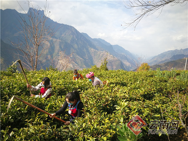 在另一个山头,老姆登村致富带头人郁伍林一家也没闲着,一家人分头劳作,捡柴火、清理农家乐、到茶叶地除草,忙个不停。“每次出门干活,我们都戴好口罩,疫情防疫要求我们一定要做到,生产管理也要跟上。”郁伍林说,疫情总会结束,日子还得继续,该干什么,还得干什么。这几天,福贡老姆登高山茶种植农民专业合作社理事长、技术指导和大林一直在茶叶种植基地劳作。该合作社采用合作社+社员(农户)+基地+市场”的产业化运营模式,建成优质示范茶园1000 亩,辐射带动村里发展茶叶近2000多亩。