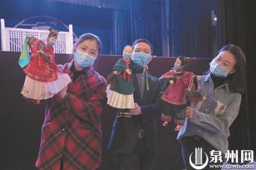 “自身防护莫畏难,家门不出不添乱……”晋江市掌中木偶艺术保护传承中心在短短两日内新编排一出5分钟左右的短剧《亲姆拜年》,向公众进行疫情防控宣传。演出时,不仅演员们戴着口罩,三个木偶也都戴上了小口罩。 (许雅玲 陈诗章 摄)