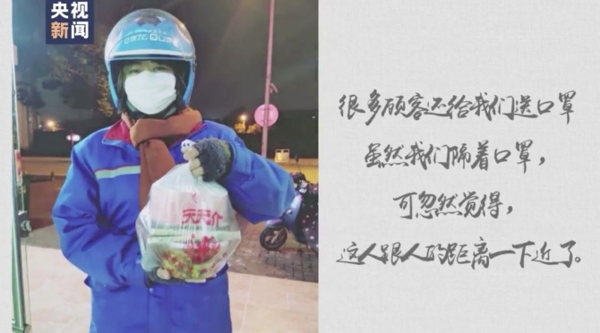 以前送餐的时候,最希望的就是顾客能理解我们,不管是点餐的顾客,还是小区物业值班的师傅都对我们非常好,很多顾客还给我们送口罩,虽然我们隔着口罩,可忽然觉得人跟人的距离一下近了。