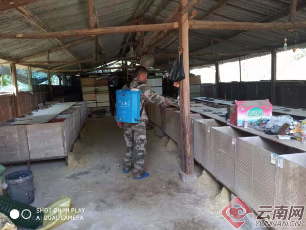 1月26日芒市养殖户消毒。省林草局供图
