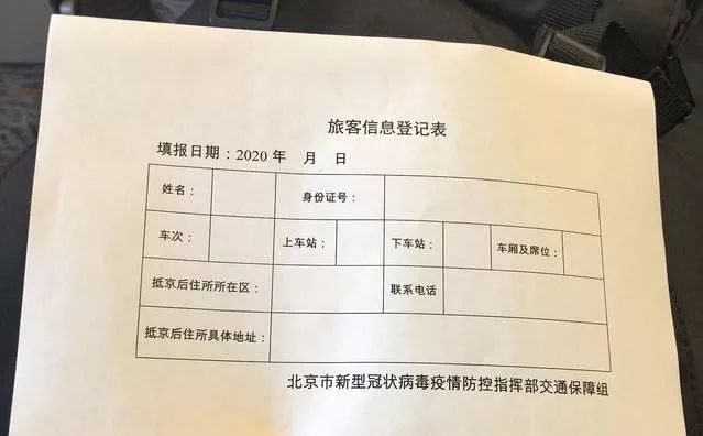 △外地抵京的铁路乘客须填写《旅客信息登记表》