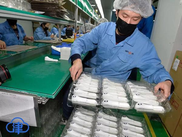 “为尽快满足防疫需求,我们尽量把每个生产环节用时压缩到最短,一只额温计从焊接零部件到检验合格出厂,只需两天时间。”施向健说,复工期间我们坚决做好防疫工作,公司对员工班车每天严格消毒,员工进门和上下午都要定时测体温。车间公共区域每天两次消毒,电梯间等重点区域一天四次消毒。“此外,按照新区复工指导意见,我们还对员工餐厅重新布局,每人座位间隔1.5米,由面对面就餐改为同向就座用餐,全面做好防护。”