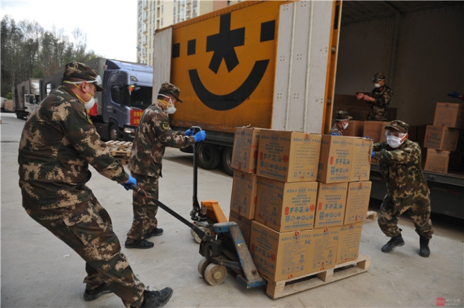 “我们接到咸宁市防指电话后,立即向省总队汇报,经批准后抽调30人带好防护装备出动参与援咸物资卸货。”带队的支队政治部主任彭胜凡告诉记者,尽快协助卸货,既能促进援助物资早日落到实处,又能节约来咸人员返程时间,支队在按要求做好疫期执勤任务的同时,全力参与咸宁防疫战斗。