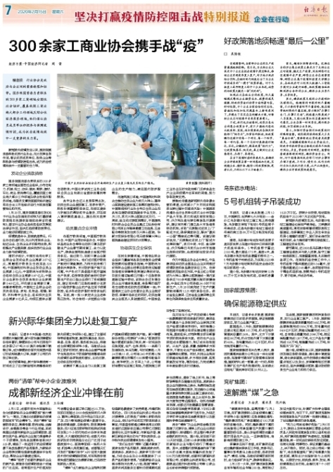 各专业协会还从自身职责出发,动员会员企业提前复工、有条件转产,积极协调重要物资供应,向疫区提供力所能及的帮助和专业服务,并在深入调研摸底基础上,提出相关政策建议。