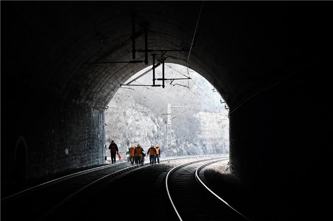 从早上6点半出发,到中午12点半,党员突击队们检查了8公里钢轨,发现了3处有伤损的钢轨。“在这里给钢轨探伤不能和平原地段比,隧道里的光线不好,稍不注意就可能漏掉伤损,弯道上的钢轨磨耗又很大,得仔细看,来不得丝毫马虎。”郭崇刚说。