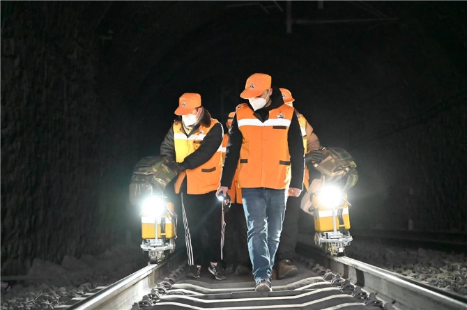 月山工务段担负的太焦铁路是电煤运输的重要通道。跟班作业的车间党支部书记郭崇刚介绍说,丹河铁路桥到孔庄火车站之间的铁路在大山里,曲线非常多,半径很小,是钢轨伤损的多发地。新冠病毒肺炎疫情发生后,受疫情防控交通管控,作业人员到这里干活很困难,但钢轨探伤一刻也不能停。