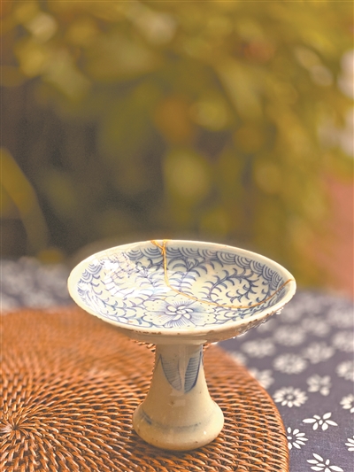 这样的修复,是一个慢的过程,每一个步骤都要耐心等待。一个个夜晚,我心无旁骛地和这些器物相守在一起;一天天过去,就这样慢慢地看着这些破碎的器物从我指尖的时光里长出新的生命,内心是愉悦的。沿着碎裂的痕迹,重生后的金之华彩,让人感动,隐在器物后动辄数十日的默默劳作,总不辜负。金缮不仅仅是在物理意义上重新修复了一件瓷器,在美学意义上也重新诠释了一种“无常之美”,重拾破碎而不失尊严,抚平伤痛却有新的欣喜。
