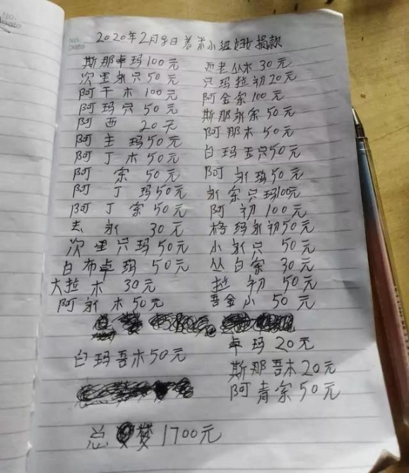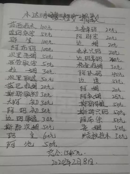 可她心中依然牵挂着战斗在武汉最前线的白衣天使们,她说我们这里缺乏能够供应疫区白衣天使们的物资,那我们就捐款,每人拿出一点自己的心意,通过正当渠道汇给疫区姐妹,让她们购买自己需要的物品,为前线的英雄们尽自己的一份微薄之力,村民们纷纷表示赞成,用半天时间就募集了14210元。