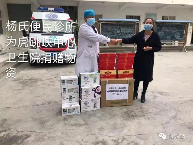 ▲杨氏便诊所总的捐赠价值8000余元的物资给卫生院、卡点、虎跳峡镇政府、下桥头村委会工作人员