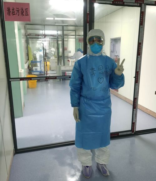 时间在防护服的包裹下变得无比漫长,呼吸越来越困难,心跳逐渐加快,老师们开玩笑,是不是血氧仪坏了,不然怎么大家的心率都这么快,到了老师们快换班时间了,我也准备出去了,也面临拖防护服这个难关,这时候督导老师在门口对我比了个放心的动作,我放心的开始了脱防护服的流程,一路走下来,被督导老师说了好多次,我们可能太过于担心,贴了好多胶布,以至于让我的脱衣困难重重,也增加了污染的风险,所以理论还是得和实践相结合才行啊,终于走出了隔离病房的大门,我如释负重,回头去看病区里还在忙碌的老师们,脑子里一直在徘徊一句话:哪有什么岁月安好,只不过是这样一群人为了国家的安好,负重前行。