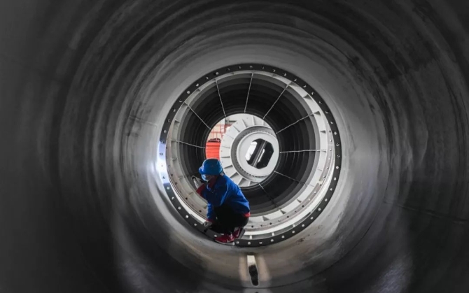 2月16日,在位于杭州市余杭区塘栖镇的宝鼎科技股份有限公司内,工人对成品主轴进行质检。新华社记者 徐昱 摄