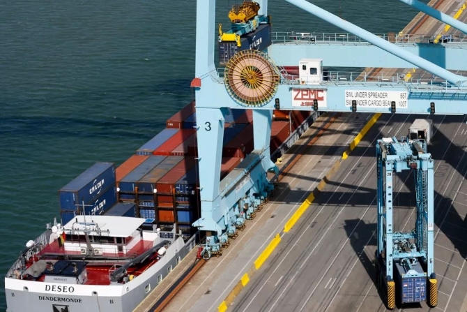 这是2018年9月18日在比利时泽布吕赫港拍摄的中远海运运营的码头。新华社 记者叶平凡摄