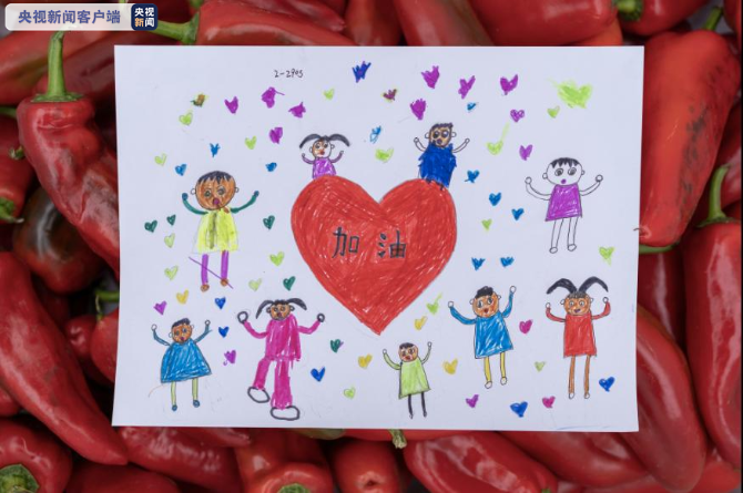来自昆明的孩童们为湖北加油的童真画作也随着这些新鲜蔬菜一同装入箱内,希望收到蔬菜的湖北亲人们可以会心一笑,心里充满温暖。