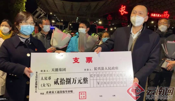 单峰介绍,云南省人力资源和社会保障厅接公函后,高度重视,厅主要负责人当天迅速组织相关州市人社部门召开了专项调度视频会,先后与昭通、德宏、红河、文山等州市防疫指挥部取得联系,协调卫健、交通、公安等相关部门开辟绿色通道,目前,先后组织了多批次“专车返岗”。截至2月20日,已有云南籍员工800余人返往长兴县企业,其中,天能集团返岗人达700余人。大姚县三台乡博后村的杞王菊是今年天能集团的新员工,拿着刚刚收到的1000元就业红包,她兴奋不已:“听老乡说天能是大公司,待遇很好,我希望我在这里也能好好干,挣上钱。”