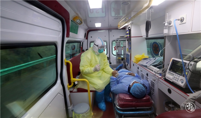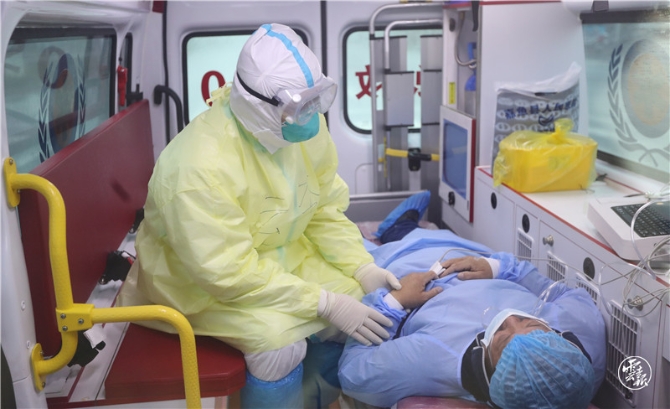 做好自身防护、安全进行转运,对李波来说是已经习惯了的日常工作。而奋战在一线的医务人员们,不仅在用自己过硬的专业技能,全力以赴救治患者,还通过他们的关爱与呵护,为患者传递着战胜疾病的强大力量。