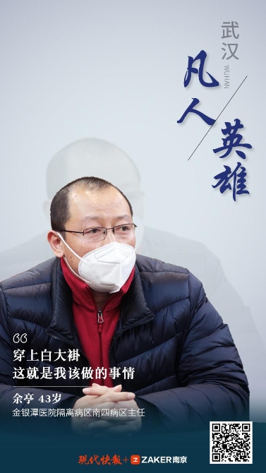 我是 2000 年参加工作的,本来是结核科的一名主治医师。2019 年 12 月 29 日,我们接到领导通知,火线筹建一个全新的病房,专门用来收治新型冠状病毒肺炎病人。当时有点紧张,但我知道这个时候不能退缩。我负责金银潭医院隔离病区南四病区的工作,病区 6 名医生、20 名护士一直都在第一线连续工作。共收治新型冠状病毒肺炎病人近 200 人,出院患者达 150 人。