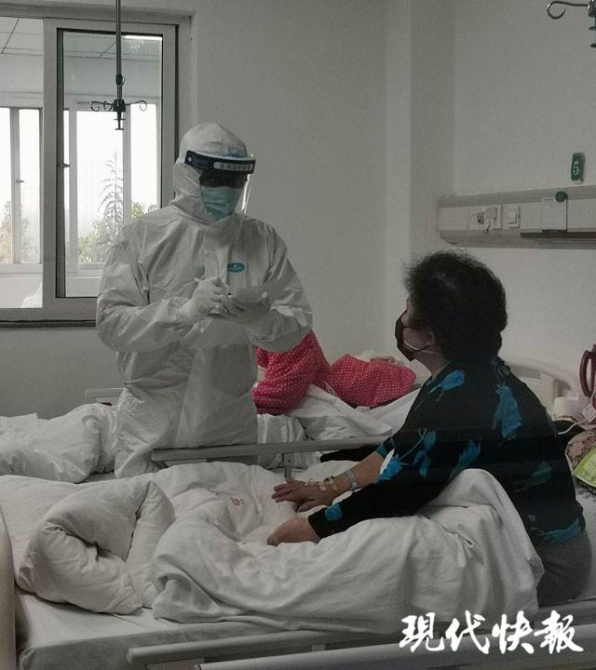 我对每一位患者都尽心尽力,一视同仁。有些活跃一点的,和我交流就多一些。有一位 82 岁的老爷爷,入院时生活不能自理,下床走两步气都接不上来,说话断断续续,经过 14 天的救治和精心护理,终于能出院了。在病房里,当我告诉他可以出院回家的时候,他非要拉着我拍照,他认为这是他生命中最珍贵的一张照片,这让我很感动。这给了我很大的鼓励,我们把病人救下来,他们是真心实意记得我们的。医患之间就是要互相信任。