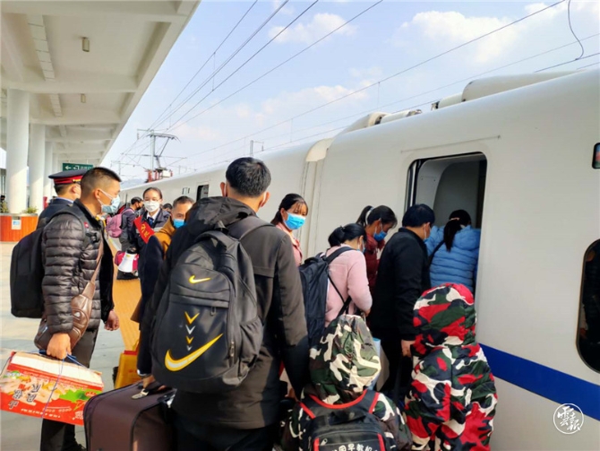 2月18日下午,来自东川、寻甸、石林、嵩明等地的96名昆明籍务工人员乘昆明南至广州南D4856次专列返粤就业。昆明市人社部门采取提升组织化程度,有序组织昆明籍务工人员分批次外出就业,积极与用工需求较大的津京冀、长三角、珠三角等地100多个市场前景好的劳动密集型企业开展对接,提供上万个就业岗位,分时间、分地点、分批次错峰、有序、成规模包车组织输出。并建立了护送队伍,成立乡镇(街道)分管领导为护送队长,劳动保障服务中心主任为护送队员的护送队伍,以10人为组、50人为班、100人为连编队输出。截至2月22日,全市农村劳动力返岗及转移就业192354人,其中省外6189人;有组织转移44747人。