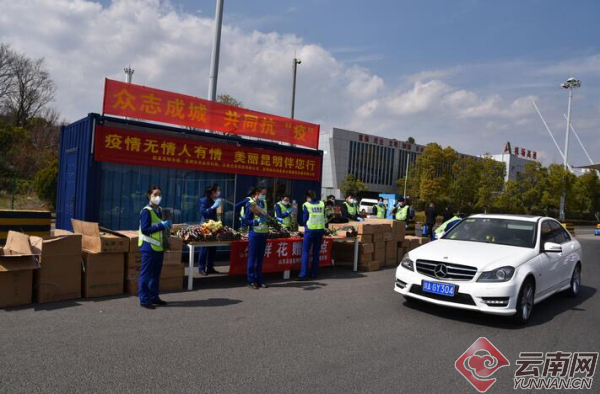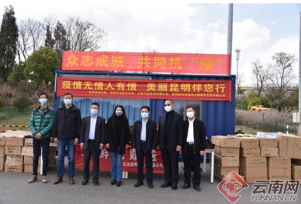 2月24日下午,昆明新机场高速公路建设发展有限公司联合民革昆明市委、昆明市农业农村局、云南尤佳商贸有限公司在机场高速主线收费站广场举办了“疫情无情人有情、美丽昆明伴您行”鲜花赠送和疫情防控宣传活动。