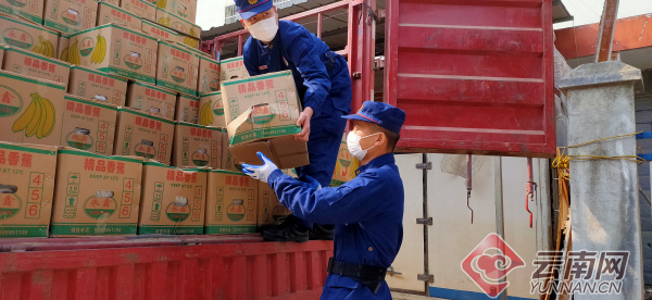 腾冲驰援湖北256吨香蕉抵达咸宁 通讯员供图