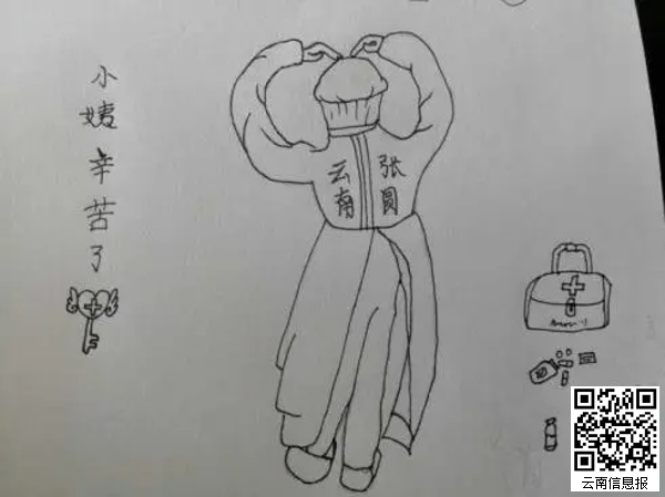 “小姨,你真勇敢,你们都是好样的”张圆的小侄女利用她发的工作照画了一副又一副的简笔画,并配上祝福,这满满的祝福让大家都非常感动。