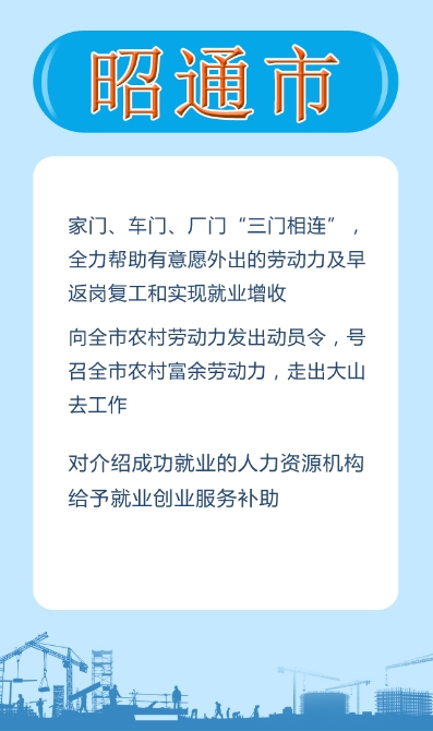 云南省人力资源和社会保障厅下发了《云南省人力资源和社会保障厅办公室关于新型冠状病毒感染的肺炎疫情防控期间优化加强线上公共就业服务工作的通知》《关于疫情防控期间稳就业工作行动方案》等一系列文件,对外出务工人员给出了一系列政策加油包,其中包括: