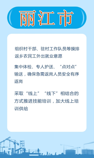 开展劳动技能培训:开通了云南职业技能网络培训平台,广大务工人员可以通过手机端下载App软件,在家学习相关技能,并出台了在线培训同样可以享受培训补贴的政策。