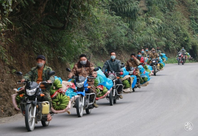 2月2日,一辆货车从红河州河口县发往湖北,车上满载着莲花滩乡石板寨坡头小组93户村民自发捐赠的22吨香蕉。