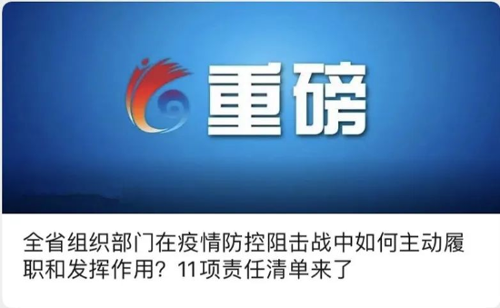 出台举措,意在强化担当作为。面对疫情防控的严峻形势,全省各级组织部门强化责任担当,积极主动作为,广大组工干部争先锋、当旗帜,积极投身在抗疫第一线。