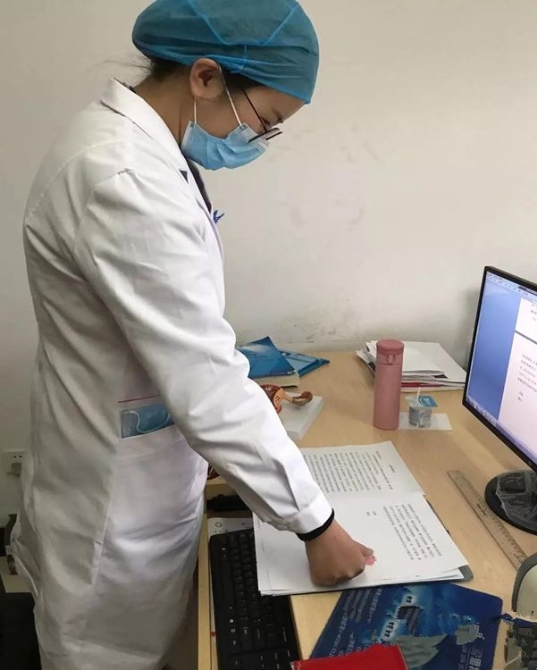 丽江市人民医院医护人员利用工作间隙认真书写入党申请书,积极向党组织靠拢